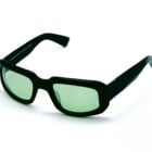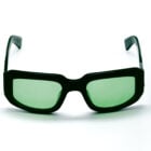 The thick, matte-black bio-acetate frame exudes raw strength and contemporary allure, while the green lenses add a bold retro twist.