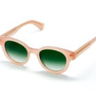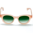 With its round frame in crystal terracotta acetate, it illuminates the face and adds a delicately retro touch.