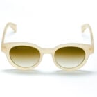 The round frame in blonde tortoiseshell acetate illuminates the face and sublimates every look.