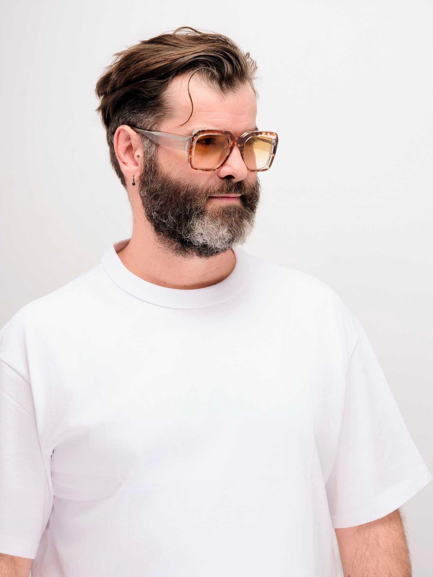 Avec sa forme rectangulaire affirmée et ses volumes denses, STEF revisite les codes classiques de la lunette solaire à travers une écriture plus graphique, presque architecturale. Une silhouette nette, équilibrée, pensée pour durer.