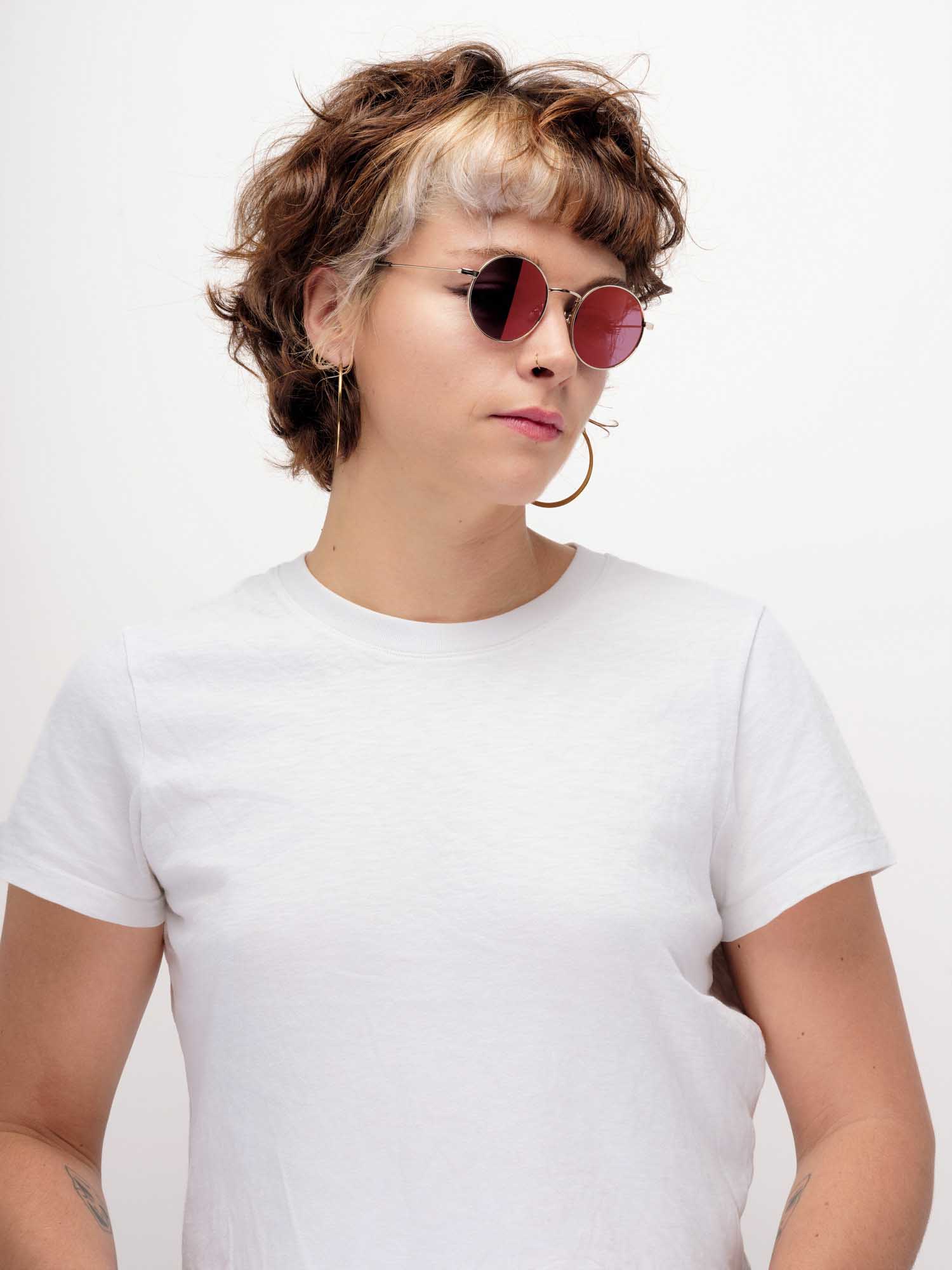Elle s’impose comme l’accessoire de caractère avec un regard miroir pour refléter le monde — en orange. Pétillante, audacieuse, légèrement piquante.