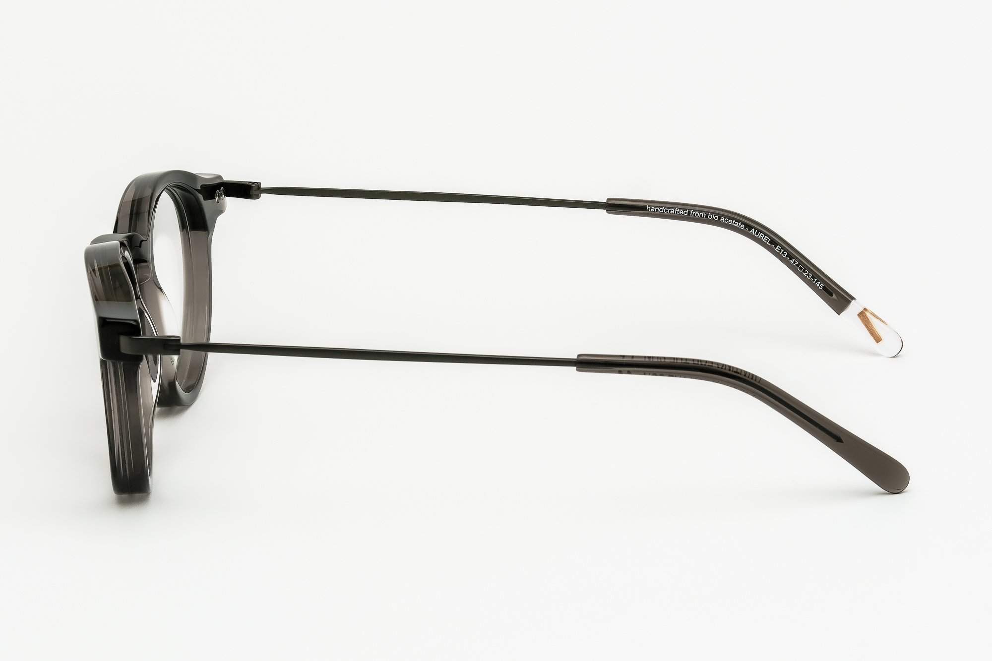 • Monture combinée bio-acétate ambre fumé & acier recyclé